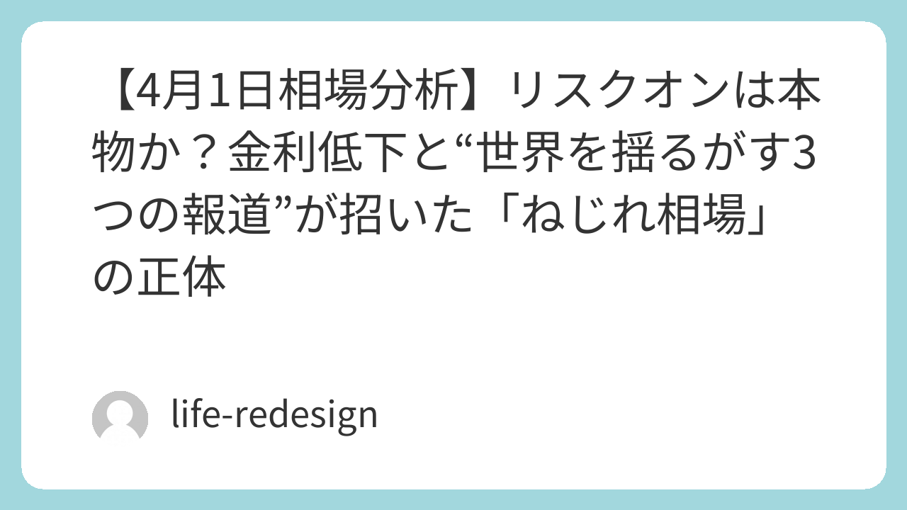 4月2日の相場は、前日の「完璧なリスクオン」から一転。